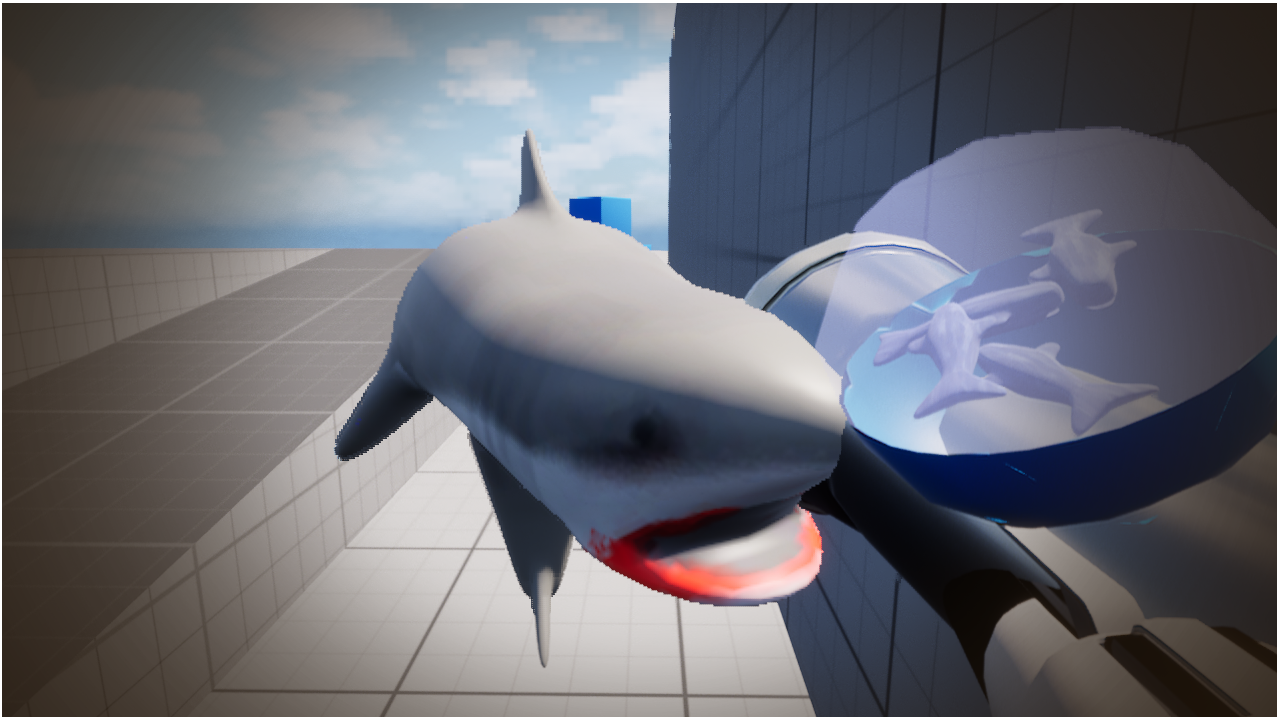 Unfortunately, the "ammo" doesn't kill the sharks... because I ran out of time.